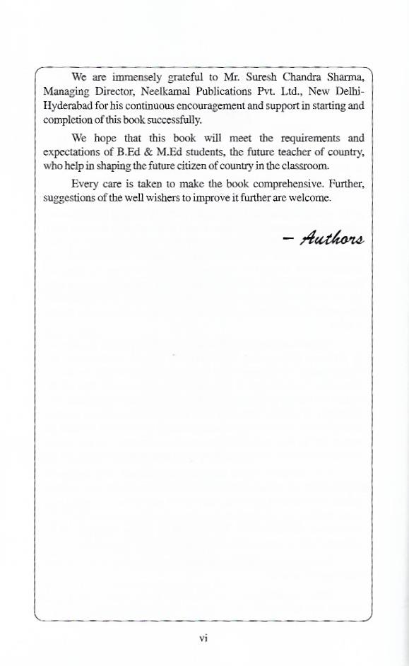 We hope that this book will meet the requirements and expectations of B.Ed & M.Ed students, the future teachers of country.