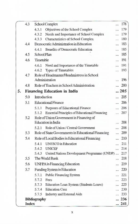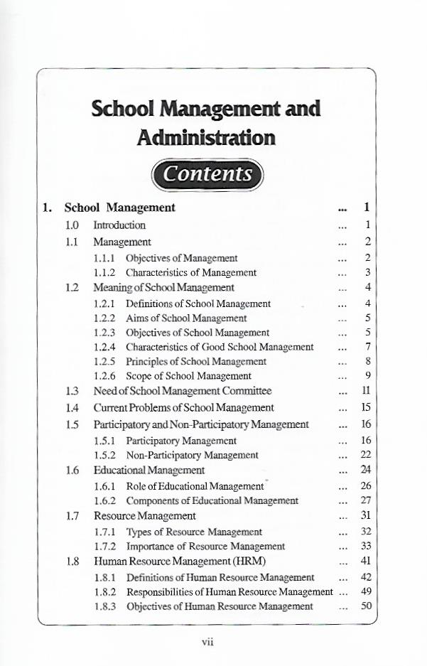 It is, therefore, hoped that the book will not only satisfy the requirements of syllabi of the NCTE in general and the different universities of India in particular, but will also provide useful reading to all those teachers and administrators, who are seeking guidance for better Educational Administration, it is written in simple language and is supported with examples drawn from day-to-day life experiences.