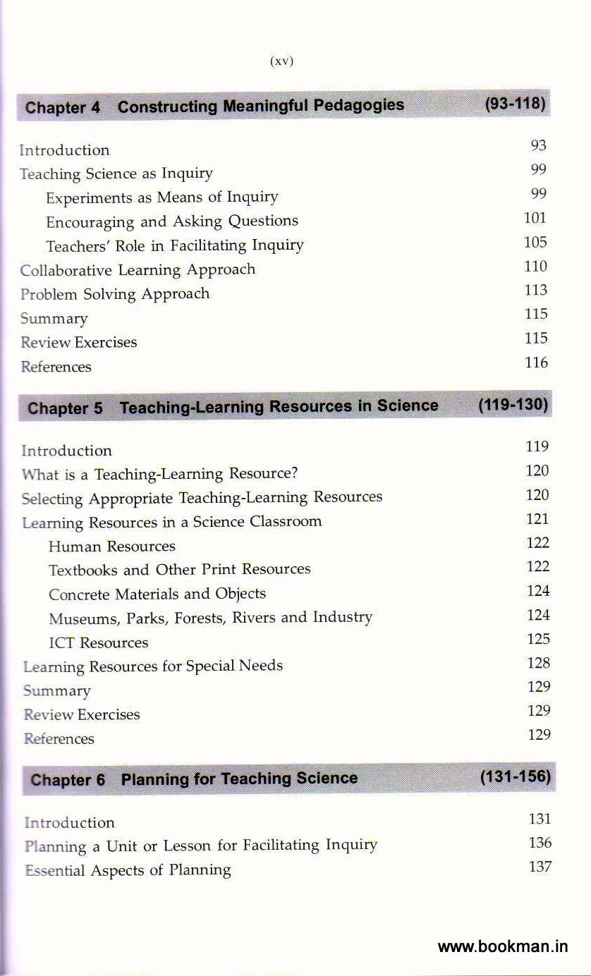 Efforts have been made to consider research conducted in the field of science education and articulate them with conceptual understanding relevant to the processes of learning, teaching, and assessment. The content has been created to contemporize these concepts and present them in an interactive manner. The curricular requirements of the teacher education programs like- B.Ed., M.Ed., B.EL.Ed. and B.Sc.-B.Ed. (Integrated) have also been taken into consideration. With its emphasis on, and faith in, the agency of learners and teachers, it is sure to help prospective and practicing teachers in their journey of being enthusiastic and transformative science teachers and researchers.
