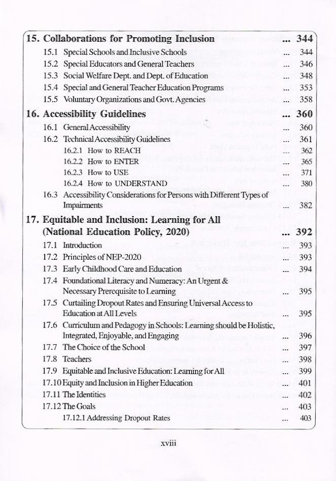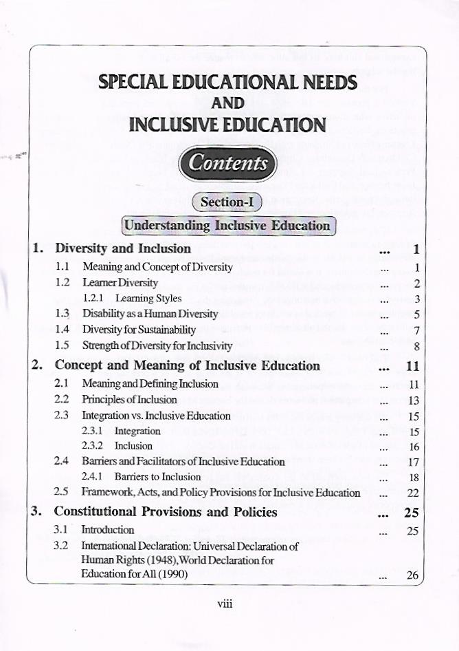 This book was written with a commitment to educate Special Education Teachers, Trainee Teachers of Special Education and Parents associated with the Education of Children with Special Needs. Its intention is to realize the mission of equitable and inclusive education: learning for all in the regular schools. So. the overriding concern in Special Educational Needs and Inclusive Education” is to present material clearly in simple language so that trainee teachers can read it on their own to acquire knowledge. This text is designed to provide a comprehensive outlook on Special and Inclusive Education, in order to enhance and strengthen the role of educating children with exceptional in various educational programs. It is useful for teacher recruitment for the posts of school assistants in special education, under IEDSS. It is also useful for Special TRT, TET, DSC, IEDSS, SSA, KVS, SET/NET and other competitive examinations throughout the country. This book would enlighten all people who are interested in working for children with special needs, and also helpful to the resource -9 teachers who are working in Samagra Shiksha Abhiyan.