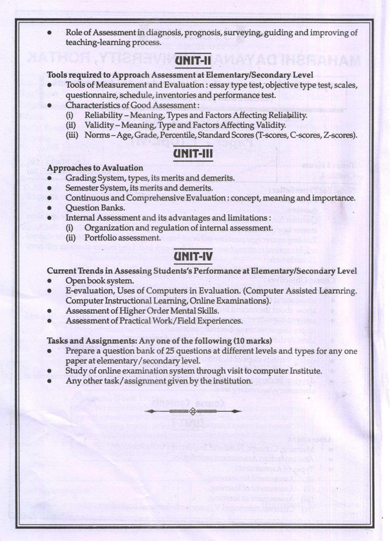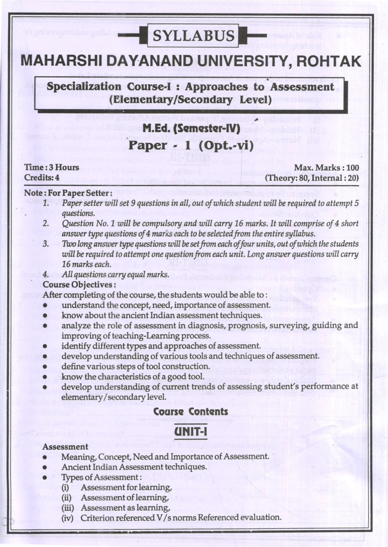 SPECIALIZATION COURSE-I Approaches to Assessment (Elementary/Secondary Level)