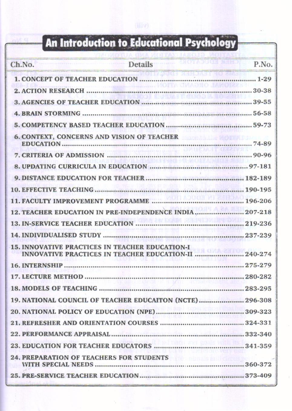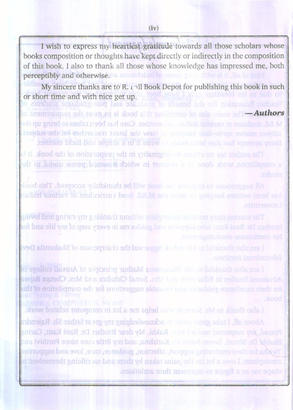 All suggestions to improve the book will be thankfully accepted. This book has been written keeping in mind the M.Ed. level curriculum of various Indian Universities.