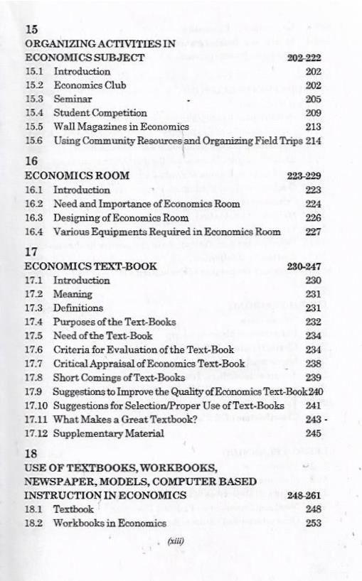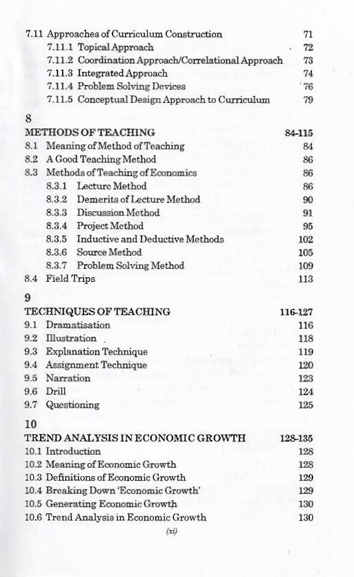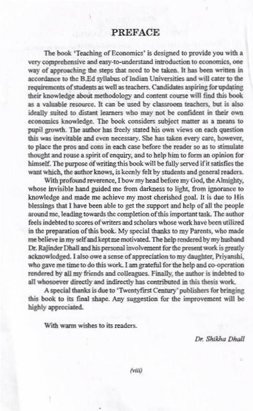 The book ‘Teaching of Economics’ is designed to provide you with a very comprehensive and easy-to-understand introduction to economics, one way of approaching the steps that need to be taken. It has been written in accordance to the B.Ed syllabus of Indian Universities and will cater to the requirements of students as well as teachers. Candidates aspiring for updating their knowledge about methodology and content course will find this book as a valuable resource. It can be used by classroom teachers, but is also ideally suited to distant learners who may not be confident in their own economics knowledge. The book considers subject matter as a means to pupil growth. The author has freely stated his own views on each question this was inevitable and even necessary. She has taken every care, however, to place the pros and cons in each case before the reader so as to stimulate thought and rouse a spirit of enquiry, and to help him to form an opinion for himself. The purpose of writing this book will be fully served if it satisfies the want which, the author knows, is keenly felt by students and general readers.