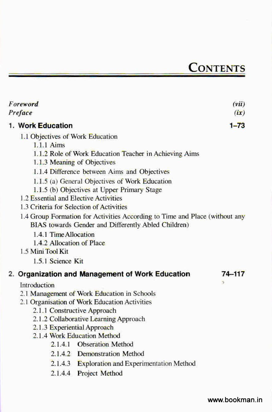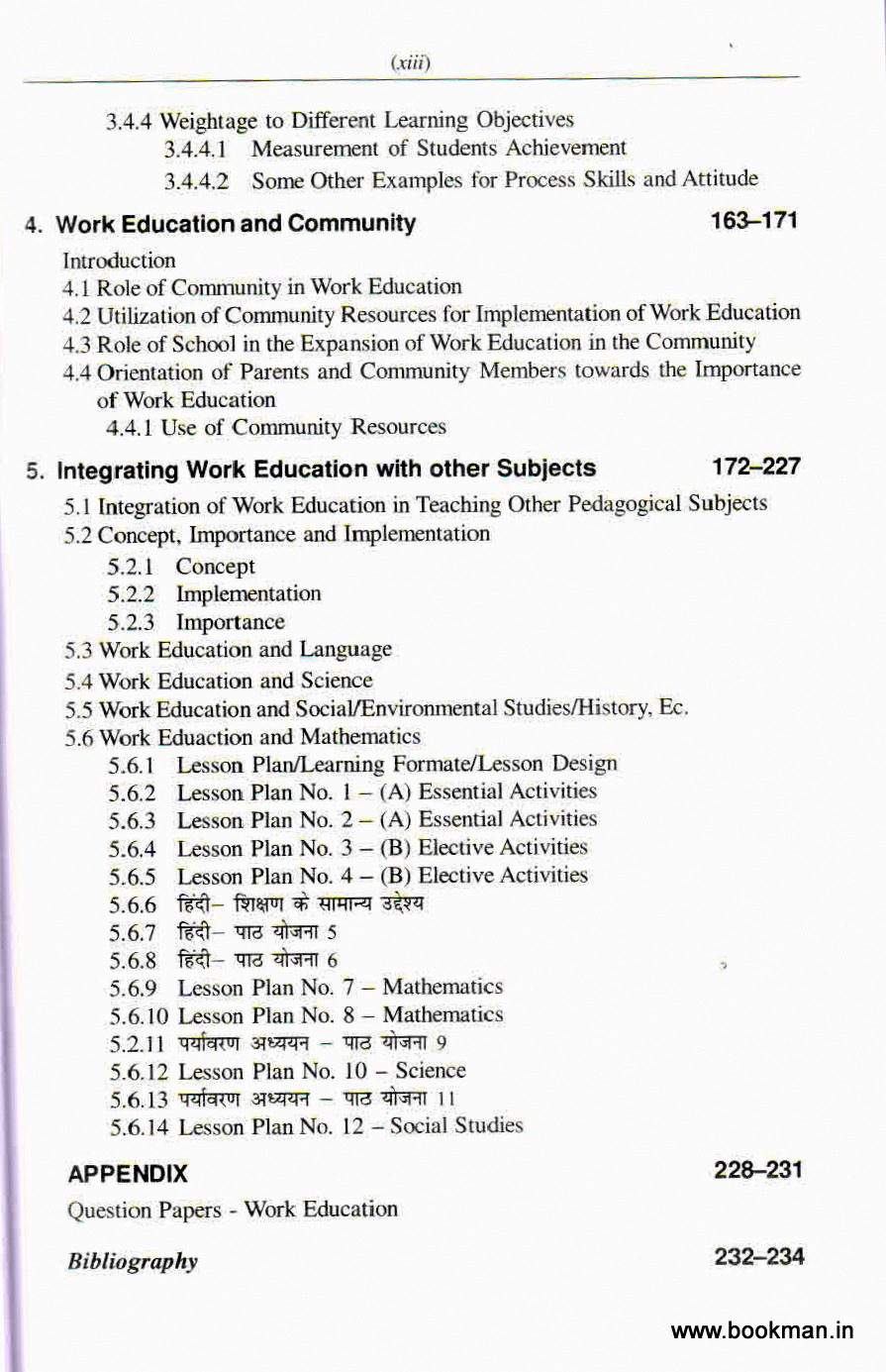 The content of this book is up to date, Important recommendation of the Vanous Education Commission has been incorporated thoroughly. The book comprises five chapters viz. Work Education at Upper Primary Level, Organisation and Management of Work Education Assessment and Evaluation of Work Education: Work Education and Community Based Evaluation: Integrating Work Education with other subjects along with 12 lesson plans and various approaches; Methods of Work Education and use of Science Kit and D.EED. question paper and bibliography. Wherever possible, I have tried to give statements from original sources of NCERT documents, SCERT documents and different books as mentioned in the bibliography.