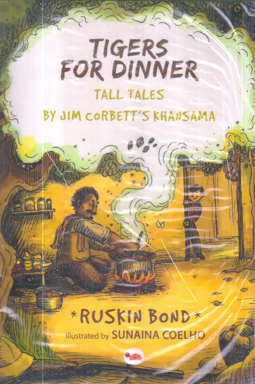 “Tigers for Dinner: Tall Tales by Jim Corbett’s Khansama” by Ruskin Bond is a humorous and thrilling retelling of jungle adventures as narrated by Mehmood, the eccentric cook (khansama) of the legendary hunter Jim Corbett.