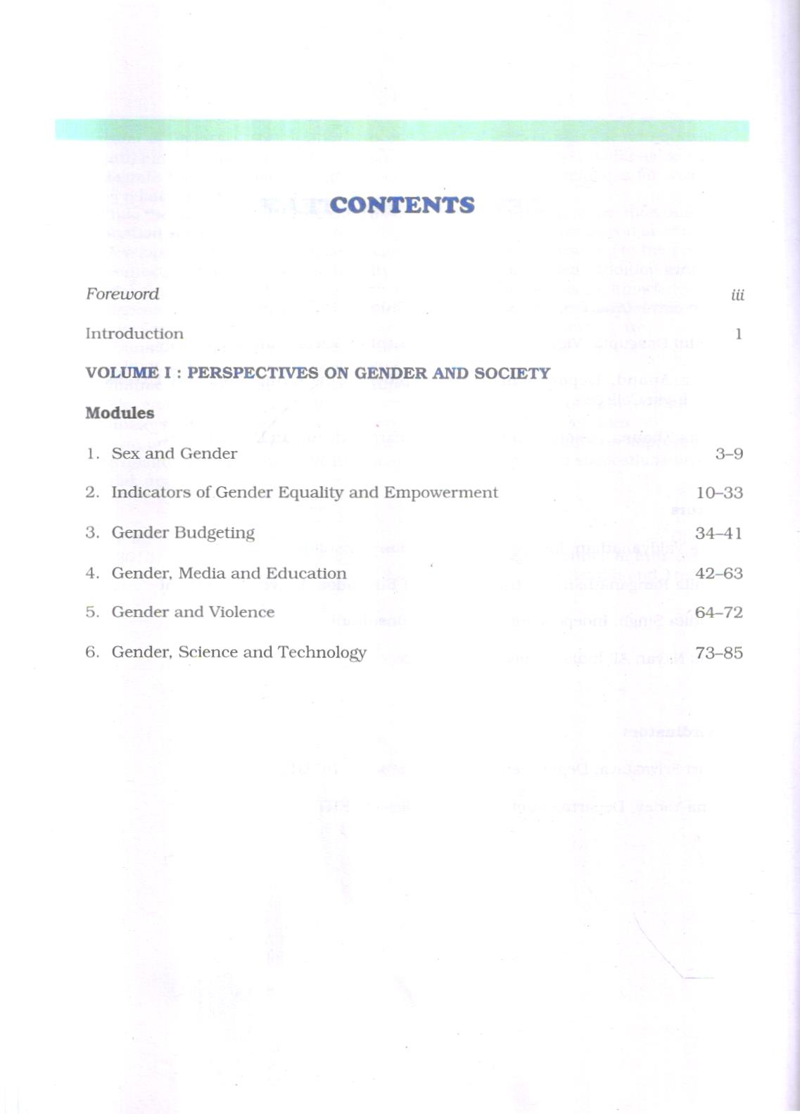The approach followed in the material is based on the position paper on ‘Gender Issues in Education’ wherein it is stated that gender should not be treated as an add-on approach but as a cross-cutting edge in all disciplinary areas. The present material is gender inclusive and will also enable the teachers to understand key concepts related to gender and how they operate in reality through various institutions. This material will provide an opportunity for self-introspection and self