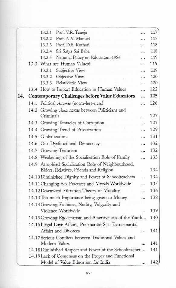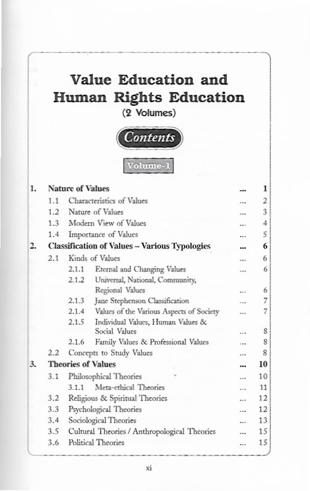 This is an ideal, up-to-date and comprehensive textbook on “Value Education and Human Rights Education” for all postgraduate students of Education in all Universities in India and in the Universities of developing and developed countries. In its 26 chapters the authors have very clearly, analytically, precisely and lucidly dealt with all the aspects of value education values, their classification, theories of values, sources of values, values enshrined in the Constitution of India, determinants of values and their bearing on education, role of education in realizing values, disvalues, dimensions of widespread contemporary value crisis, meaning, objectives and need of value education and its development in Indian history, recommendations of all important committees and commissions of Education in India, contemporary challenges before value educators, ten models of value education in India, concept of excellence versus self- centeredness, concept of work versus selfishness, concept of happiness and methods of teaching of value education.