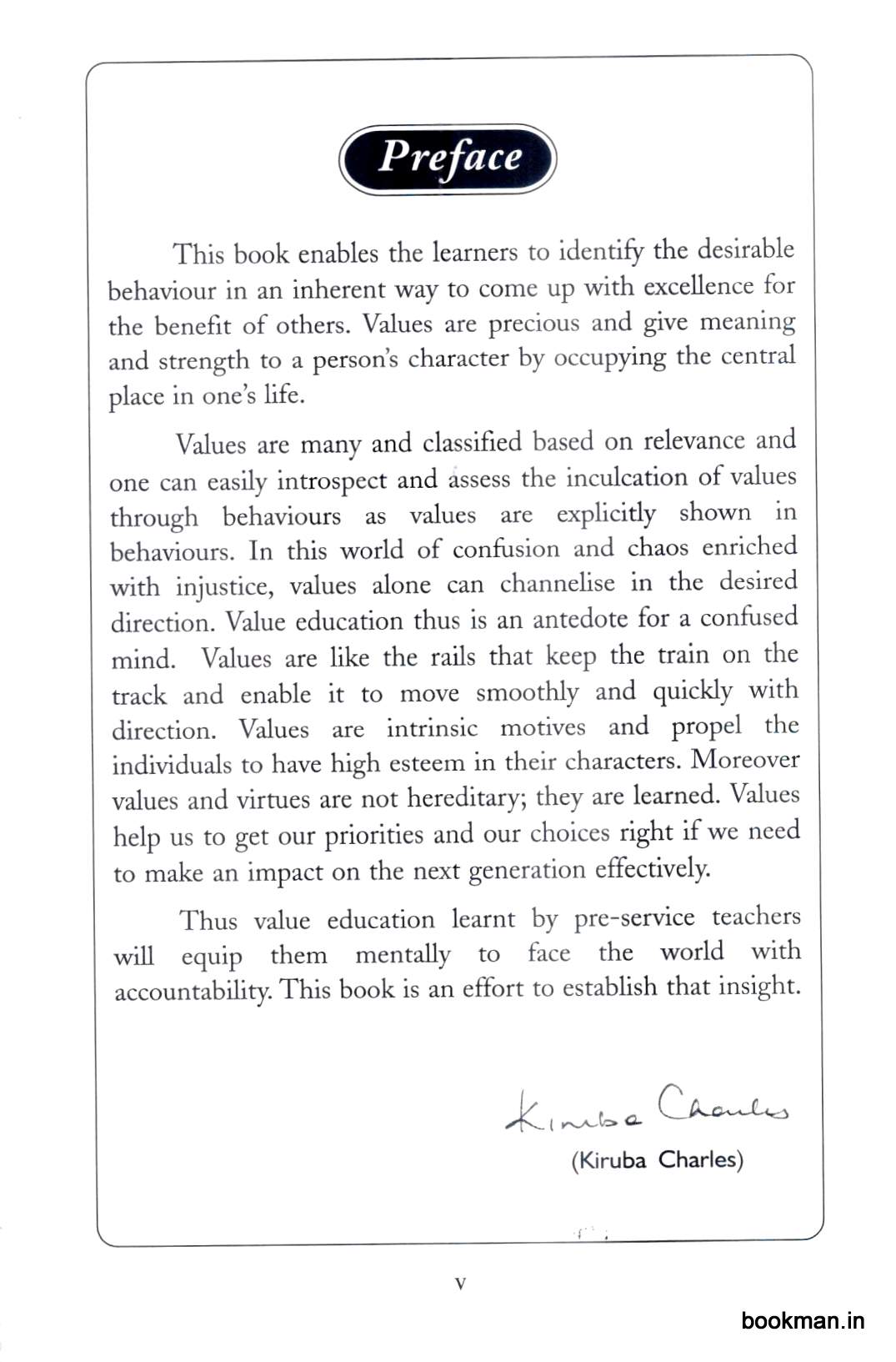 Thus value education learnt by pre-service teachers will equip them mentally to face the world with accountability. This book is an effort to establish that insight.